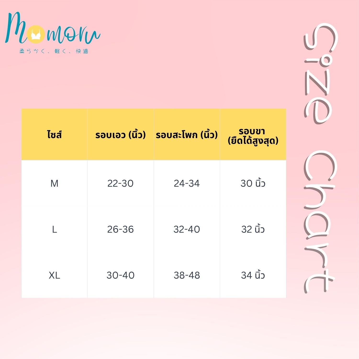 | ไซส์ | รอบเอว (นิ้ว) | รอบสะโพก (นิ้ว) | รอบขา (ยืดได้สูงสุด) |