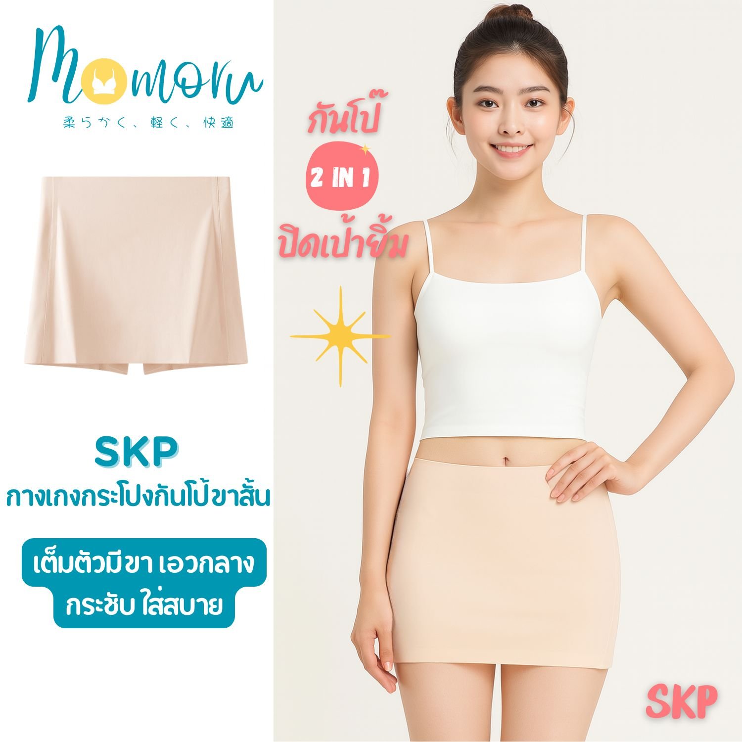 Momoru SKP Panty กางเกงกระโปรง 2 in 1 ที่สาวๆ ต้องมี! สวมใส่สบาย ป้องกันโป๊ 100% ด้วยเนื้อผ้า Ice Silk จากญี่ปุ่น ระบายอากาศดี แอนตี้แบคทีเรีย มั่นใจได้ทุกสถานการณ์ ไม่ว่าจะอยู่บ้านหรือออกไปข้างนอกก็ลุยได้เต็มที่